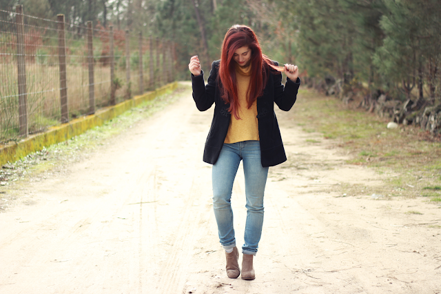 | Botins Bershka | Vestido H&M | Casaco Zara |
